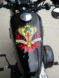 The first official venture together is the series of customized motorcycles created by acclaimed artists from around the country. The participating artists include a range of innovators with backgrounds in tattoo design, mural paintings, street art and automotive design. Acclaimed tattoo artists Jonathan Valena aka JonBoy, Oliver Peck, and Megan Woznicki aka Megan Massacre have designed a selection of bikes as well as popular Miami-based muralists, Alexander Mijares, celebrated automotive designer, Michael BuckWild Ramirez and artist Amour Supreme. Each artist was tasked with interpreting the infamous flash art style of Norman Sailor Jerry Collins into their unique motorcycle design. Members of the Harley-Davidson Styling Team round out the group of artists and use their deep knowledge of Harley-Davidson history to inspire their unique designs.