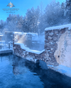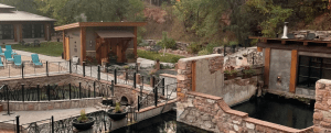 The main soak admission area has 6 outdoor natural mineral spring pools and recently added 8 person barrel sauna. Moccasin Springs does not chlorinate, they drain and clean their pools weekly. These pools range in temperature from 80-105 degrees. Sauna ranges in temperature from 110-130 degrees. If you forget your towel, robe or slippers you can rent them there. Swimsuits are available for sale in the gift shop.